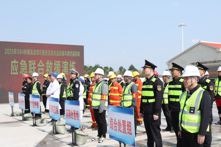 為全面提升林橫高速對服務(wù)區(qū)危化品運(yùn)輸泄漏突發(fā)事故的應(yīng)急處置能力,加強(qiáng)“一路多方”各部門間的協(xié)同配合,保障過往司乘生命財產(chǎn)安全,3月18日,南寧交投集團(tuán)下屬南寧高速公司聯(lián)合賓陽縣應(yīng)急局、生態(tài)局、交警、消防救援大隊、衛(wèi)生局及區(qū)執(zhí)法局二支隊四大隊、六大隊等單位,在林橫高速鄒圩服務(wù)區(qū)開展?;愤\(yùn)輸泄漏突發(fā)事故應(yīng)急聯(lián)合救援演練。
